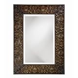 13110 Wall mirror pictured in antique black finish with verde and red accents Add traditional charm and a pop of color to your home d cor with the Fletcher Wall Mirror! Paying close attention to detail, this wall mirror boasts a beautiful antique black finish with verde and red accents which give it a sophistication like no other. The lovely detailed embellishments along the frame as well as the beautiful beveled glass make up the many finishing touches that give this wall mirror an enamoring quality. Wall Mirror Features: - Antique black finish with verde and red accents. - Metal frame. - Rectangular shape. -Can be hung vertically and horizontally. Dimensions: - Mirror Size: 22'' H x 16'' W. - Overall Dimensions: 36'' H X 26'' W.